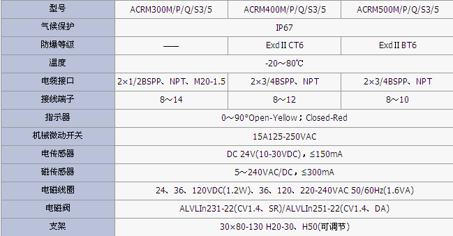 產(chǎn)品簡介:型號ACRM300M/P/Q/S3/5ACRM400M/P/Q/S3/5ACRM500M/P/Q/S3/5氣候保護(hù)IP67防爆等級&mdash...